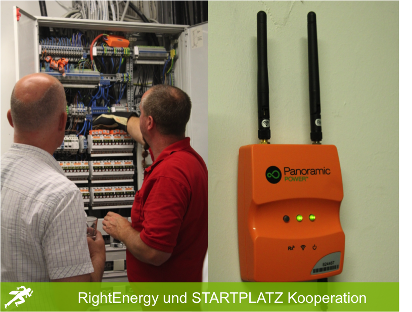 Rund 200 Personen arbeiten regelmäßig im Kölner STARTPLATZ – früh morgens, spät abends, zum Teil auch am Wochenende. Hinzu kommen Workshops und Konferenzen mit vielen externen Gästen. Entsprechend dynamisch verläuft der Stromverbrauch in den Räumlichkeiten – zumindest in der Theorie! Ob dies wirklich so ist und an welchen Stellen Optimierungspotenzial besteht, wird in den kommenden Wochen und Monaten das Kooperationsprojekt „Landkarte der elektrischen Ströme“ mit dem Kölner Unternehmen RightEnergy und der Rheinenergie zeigen. Um den Stromverbrauch effizient zu senken, muss er zunächst beobachtet und anschließend analysiert werden. Im Rahmen dieses Pilotprojekts der Rheinenergie in Kooperation mit RightEnergy und dem STARTPLATZ wurden in der letzten Woche die drahtlosen, selbstversorgenden Sensoren in den Stromverteilern der STARTPLATZ Büroebenen sowie die Sammelrouter installiert. Dank der innovativen Technik – die Sensoren werden ohne Stormunterbrechung installiert, erfassen der Stromfluß der Leitungen über das Magnetfeld und senden diese Werte per kleinem Funksignal an den Sammelrouter, der diese in einer Internetdatenbank ablegt – war die Einrichtung des gesamten Systems innerhalb weniger Stunden erledigt. Herkömmliche drahtgebunde Energie-Monitoring-Systeme erfordern eine umfangreiche Installation, zusätzliche Hard- und Software sowie aufwendige Auswertungen.